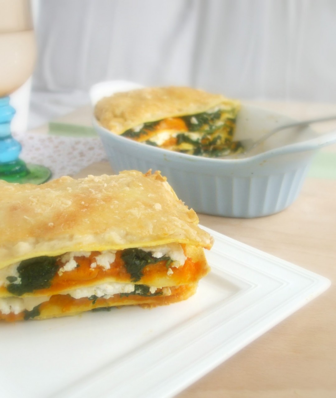Reserve. Misture os dois queijos ralados em uma tigela grande. Unte um refratário de aproximadamente 20 x 27 cm. e espalhe no fundo 1/2 xícara do molho branco. Cubra com duas tiras de lasanha cozida. Espalhe 2 xícaras da mistura de abóbora uniformemente sobre a lasanha. Cubra com 1/2 xícara de molho branco e 1/2 xícara dos queijos ralados misturados. Repita as camadas mais 2 vezes. Espalhe o restante do molho sobre a última camada de lasanha. Cubra com papelalumínio e guarde na geladeira até a hora de assar. Para servir, aqueça o forno e asse a lasanha coberta durante 30 minutos. Retire o papel-alumínio, polvilhe com o restante dos queijos ralados e asse durante mais 10 minutos, gratinar. Deixe descansar durante 10 minutos antes de servir.